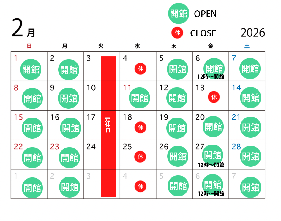 本日2月8日(日)は雪のため臨時休館いたします。