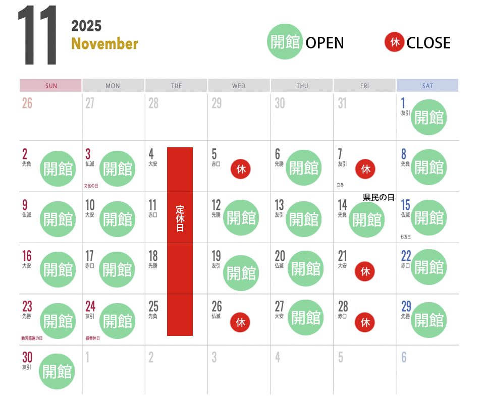 11月30日(日)は小江戸ハーフマラソンの交通規制の影響で開館が11時からとなります。
