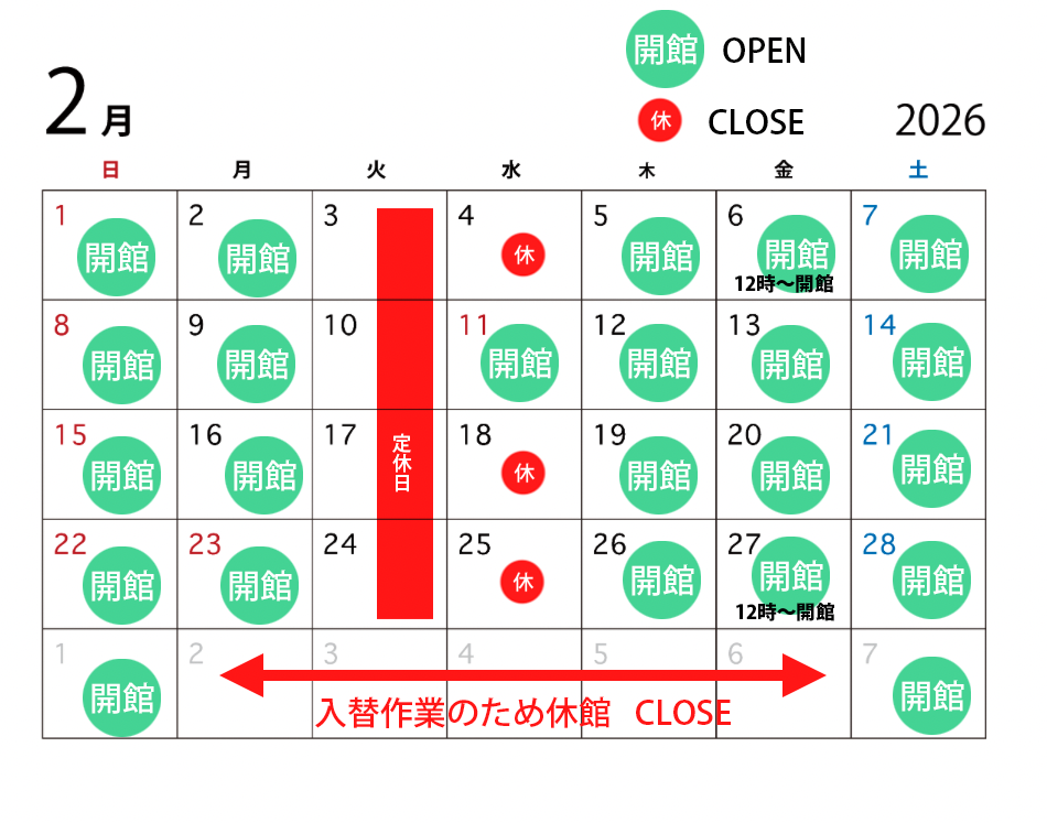 3月5日(月)から6日(金)まで作品入替作業のため休館いたします。