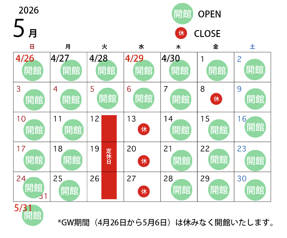 Any irregular closing days will be announced here.